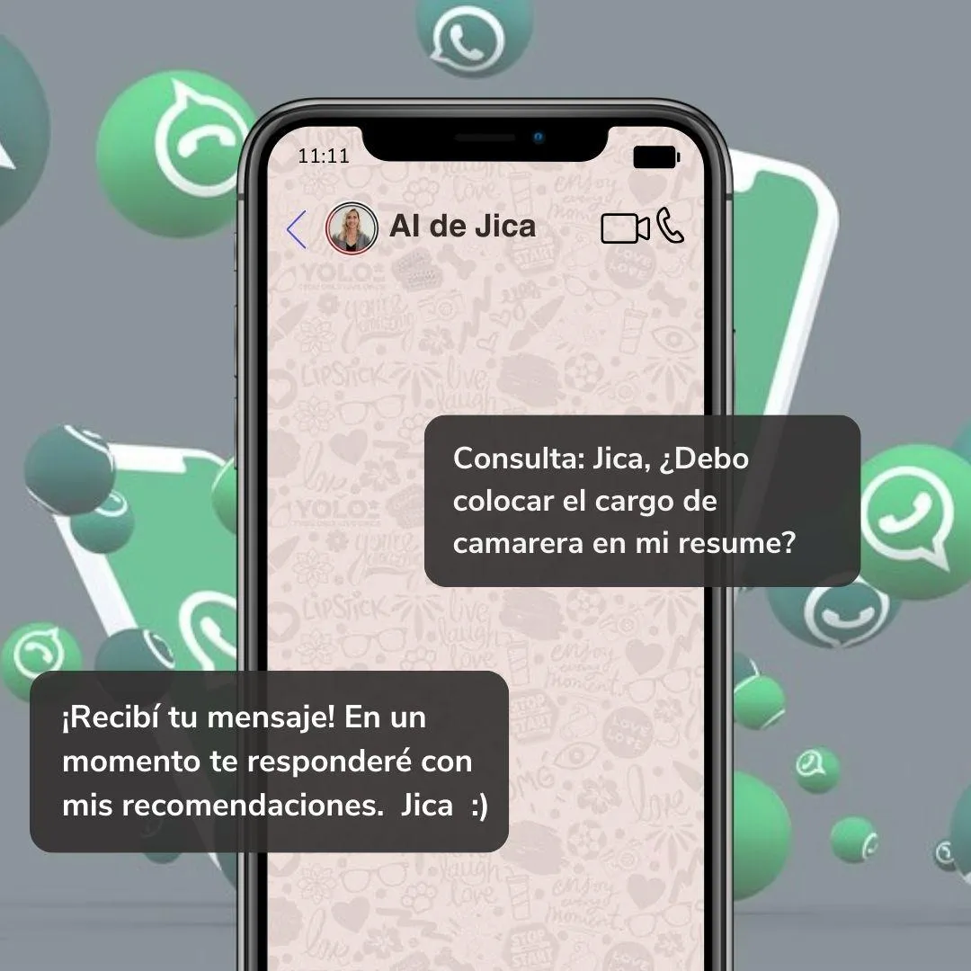 Accede a la asistencia de nuestra AI entrenada con el método Jica. Tu propio asistente virtual para orientación y sugerencias, disponible 24/7 en tu WhatsApp
